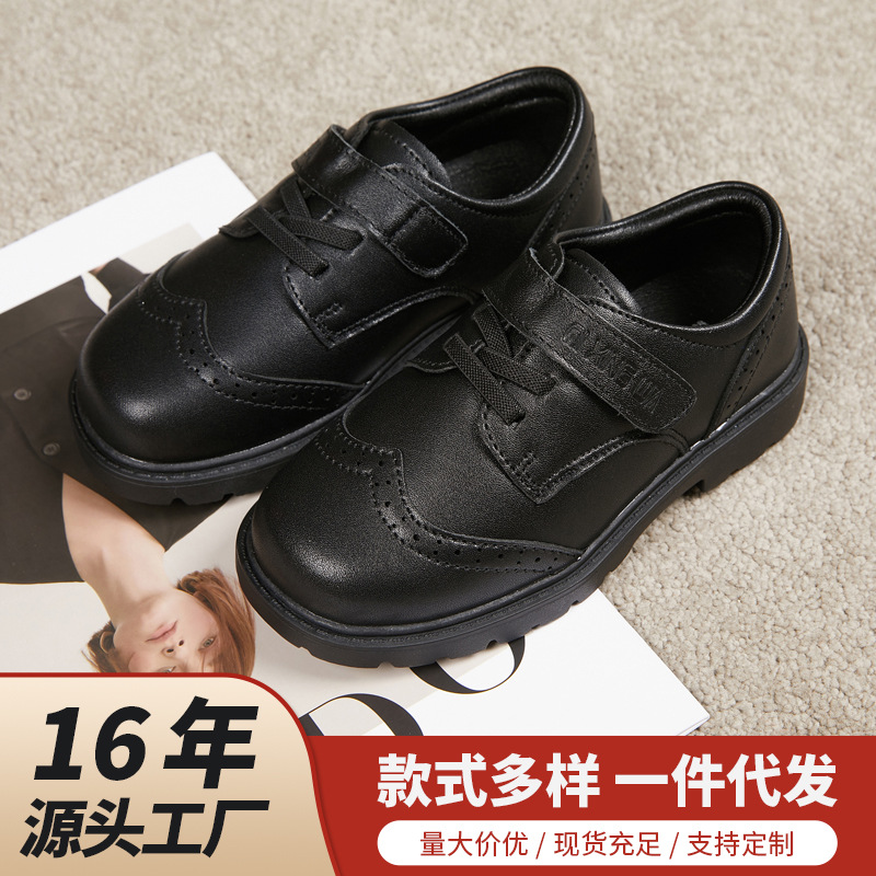 2025新型男の子靴子供黒英倫風マナーシューズ本革中大童学生出演靴