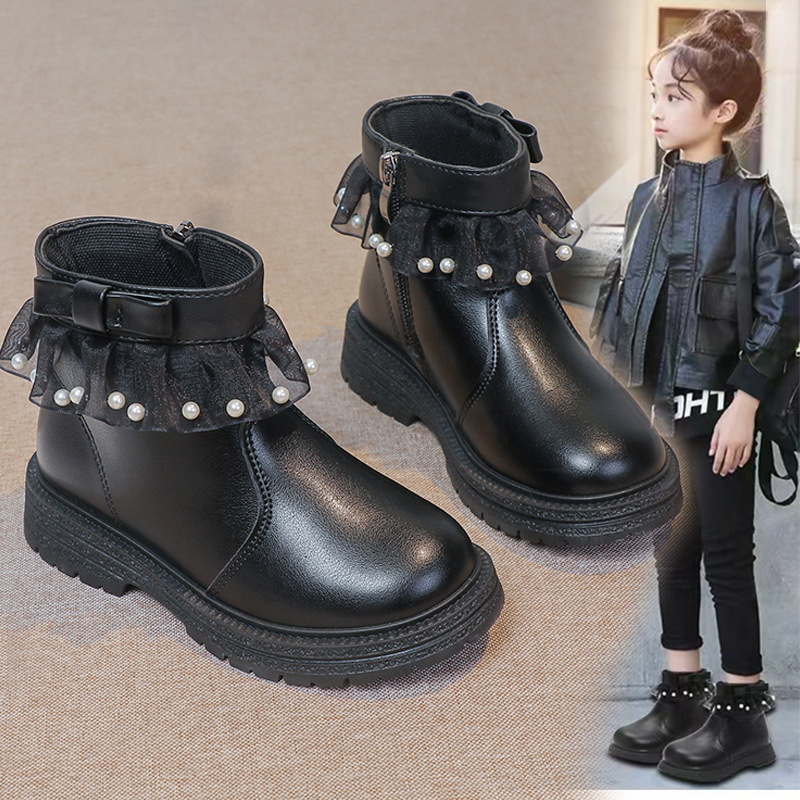 新しい韓国風子供用マーティンブーツ、本革の女の子用ブーツ、ファッショナブルで多用途な男の子用シングルブーツ、ミッドローカットの革靴