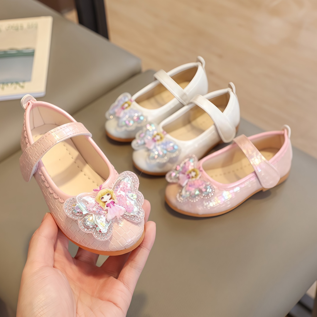 女の子用プリンセスシューズ 2025年春新作 子供靴 レザーシューズ ベビーガールズ クリスタルシューズ 春秋用シングルシューズ