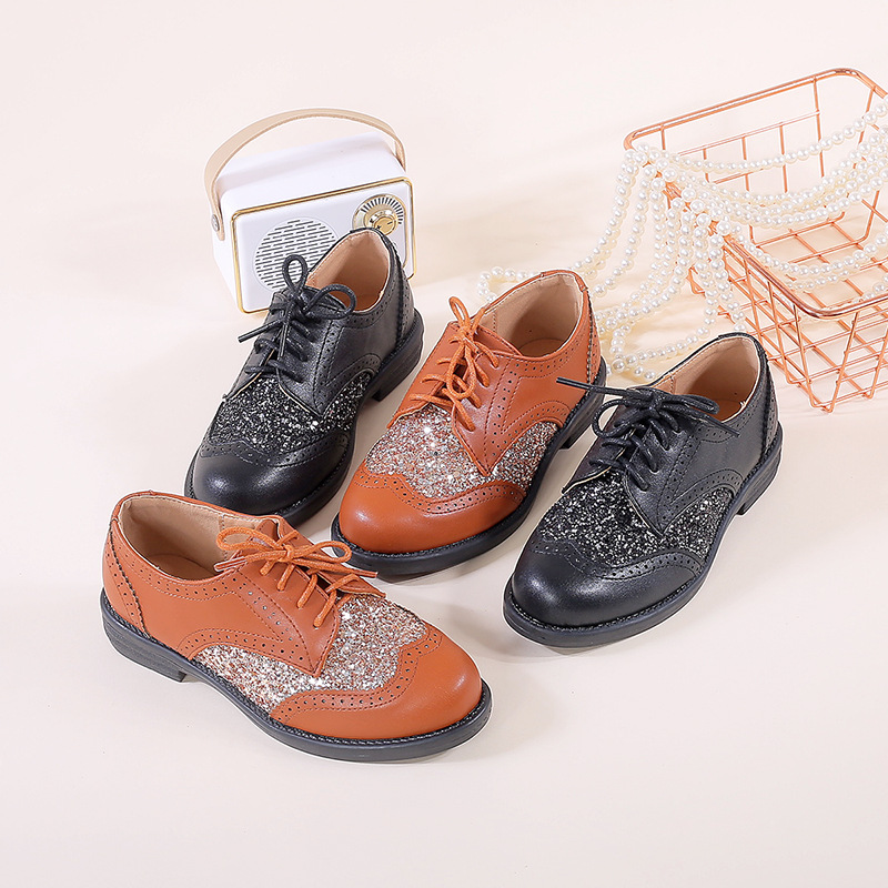 子供の靴の先の新しい色のドリルの蝶結びの女の子の王女の靴の子供の靴の小さい中の大きい子供の靴の21-36