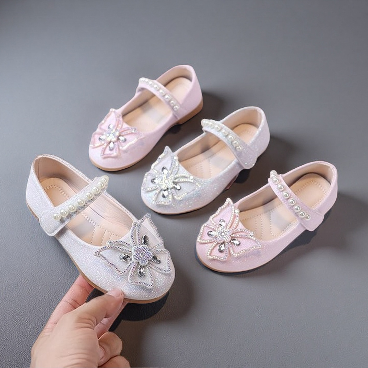 2025 春の国境を越えた新しいスタイルのリボンパールレザーシューズ子供用シングルシューズ高価値プリンセスシューズ女性用
