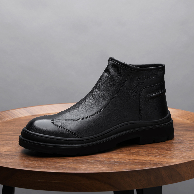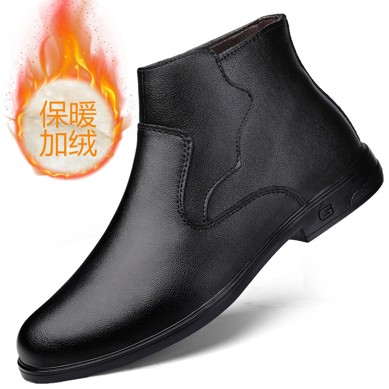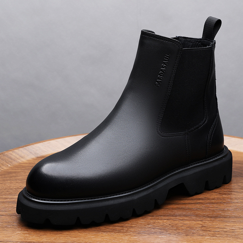 チェルシーブーツ男のファッション高級感秋冬ベルベット保温足が高くなった靴牛革中筒マーティンブーツ