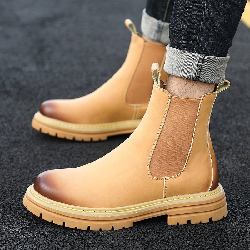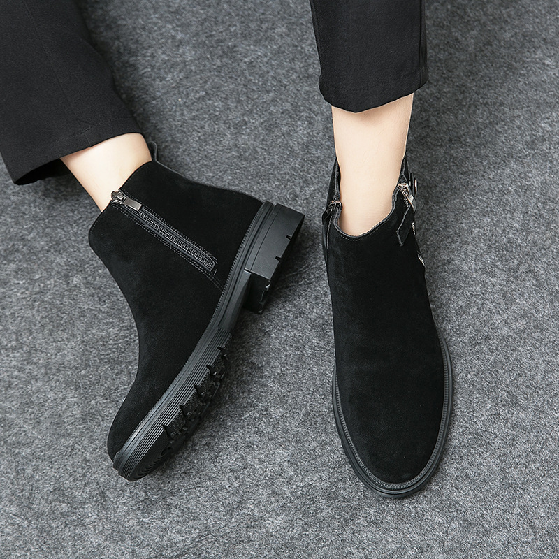 潮英倫風側ファスナー騎士靴高組新レジャーブーツチェルシーブーツ2024角頭マーティンブーツ男