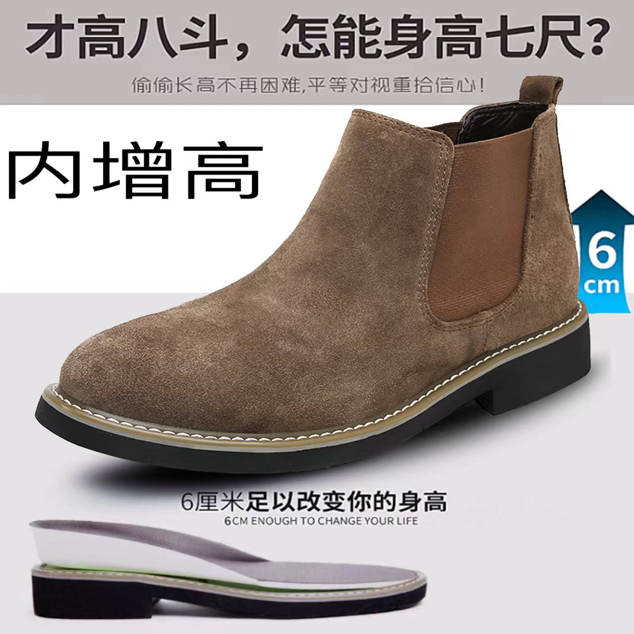 本革の靴の男性の冬の復古は古い反毛のチェルシーブーツの厚い底の高い組の二階の牛革のブーツの潮が暗いです。