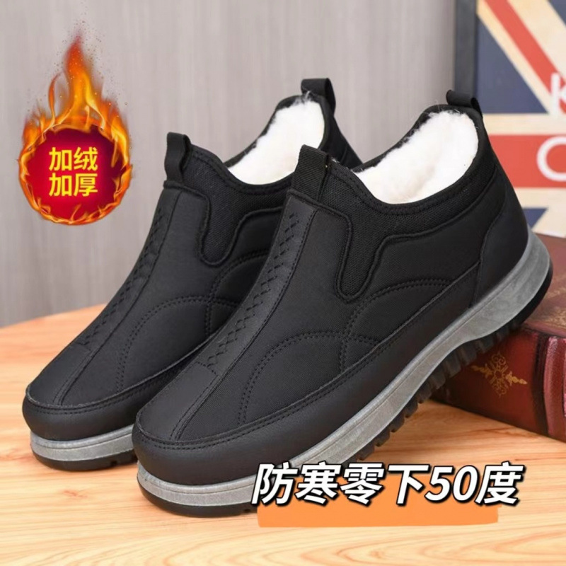 東北の防寒ウールの男の靴は厚い加毛の中高年の古い北京の滑り止めの男の綿の靴のお父さんの保温の雪の靴をプラスします。