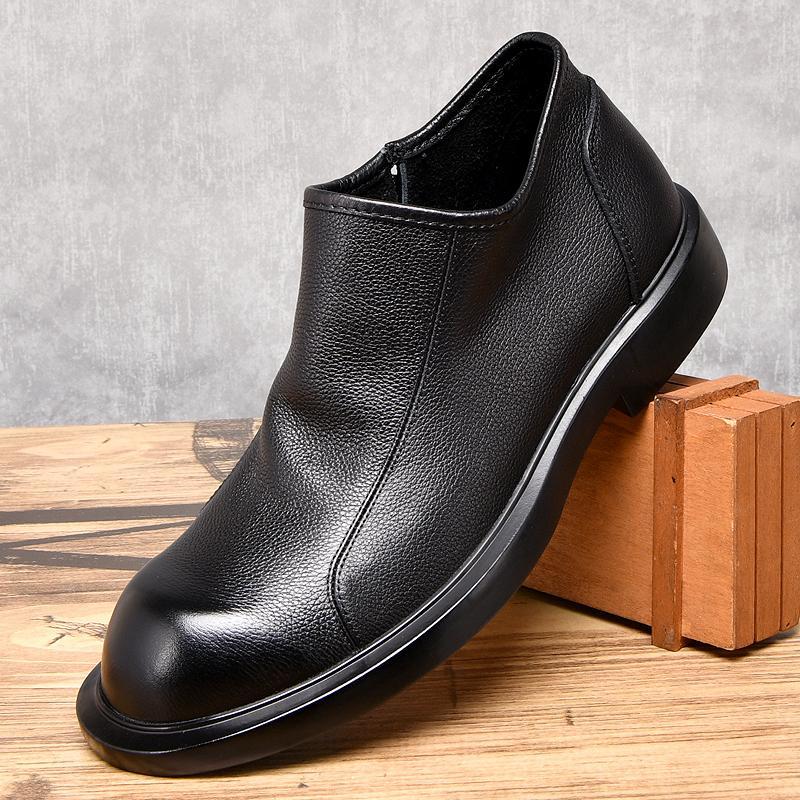 第一層牛革メンズカジュアルレザーシューズ2025秋ソフトソールソフト表面通気性チェルシーブーツトレンディビジネスレザーシューズ