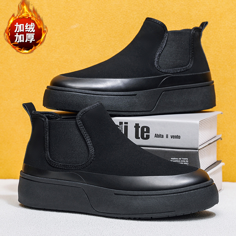 チェルシーの靴の男性の冬のベルベットの高い靴の英倫風はマーティンの靴のinsの男性の靴の男性のタバコの筒の靴を踏んでいます。