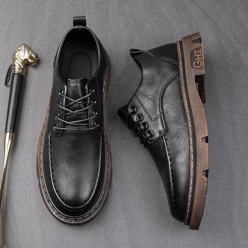 2025年春の新作紳士靴、作業靴、多用途でトレンディーな英国スタイルのカジュアルシューズ、メンズ厚底革靴、ドロップシッピング