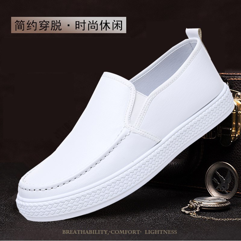 白靴2025春の本革青年ファッション板靴男一足滑り止めソフト底ファッション運動カジュアルシューズ