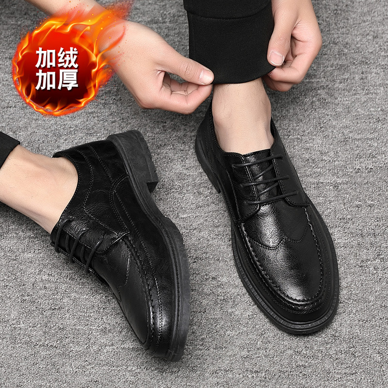 本革一層牛革ソフトレザーメンズ革靴秋の万能快適ビジネスカジュアル革靴冬の裏起毛革靴