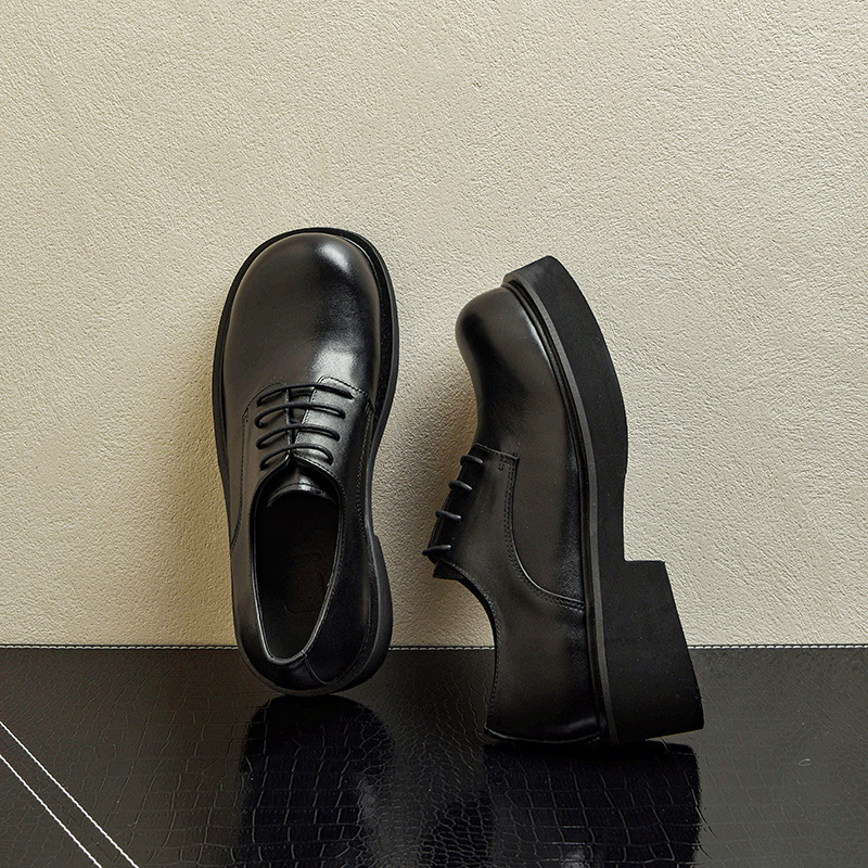 革靴男秋ファッション靴格好いい本革ファッションブランドの英倫の厚い底にはカジュアルな黒い滑り止めの大きい靴があります。