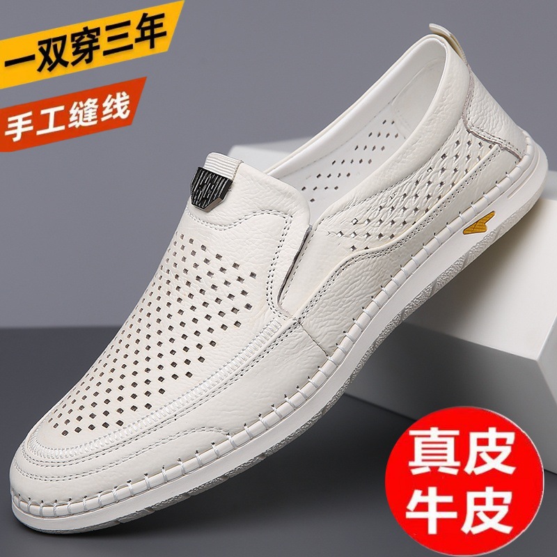 トップ牛革男性ビジネス正装革靴男性ファッション通気靴英倫一足でカジュアルな白い靴を漕ぐ
