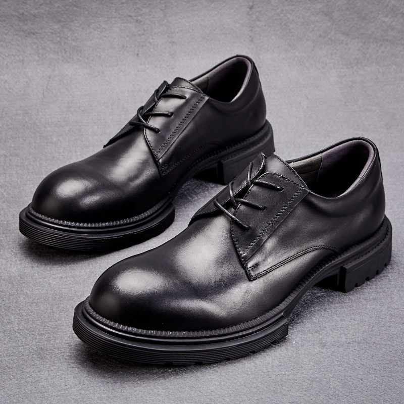 カジュアル革靴男本革英倫風厚い底通気性青年ビジネス靴ひも丸首ソフト底トレンド男靴
