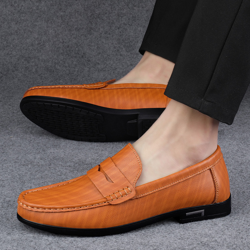 高級感のある英国風ビジネスカジュアル革靴、春秋のトレンド、万能なスリッポン革靴