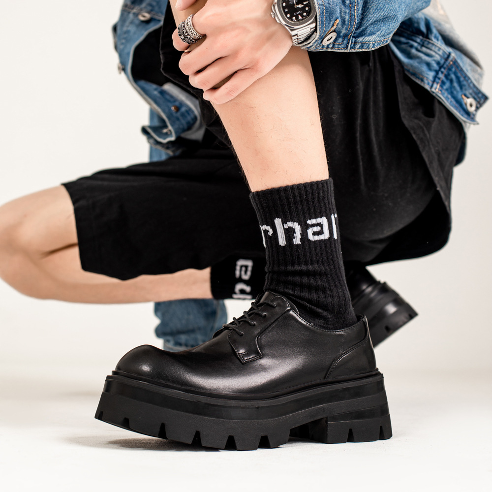 2025年新作厚底革靴メンズトレンドカジュアル英国風中年お父さん靴手掴み柄ビジネス小革靴