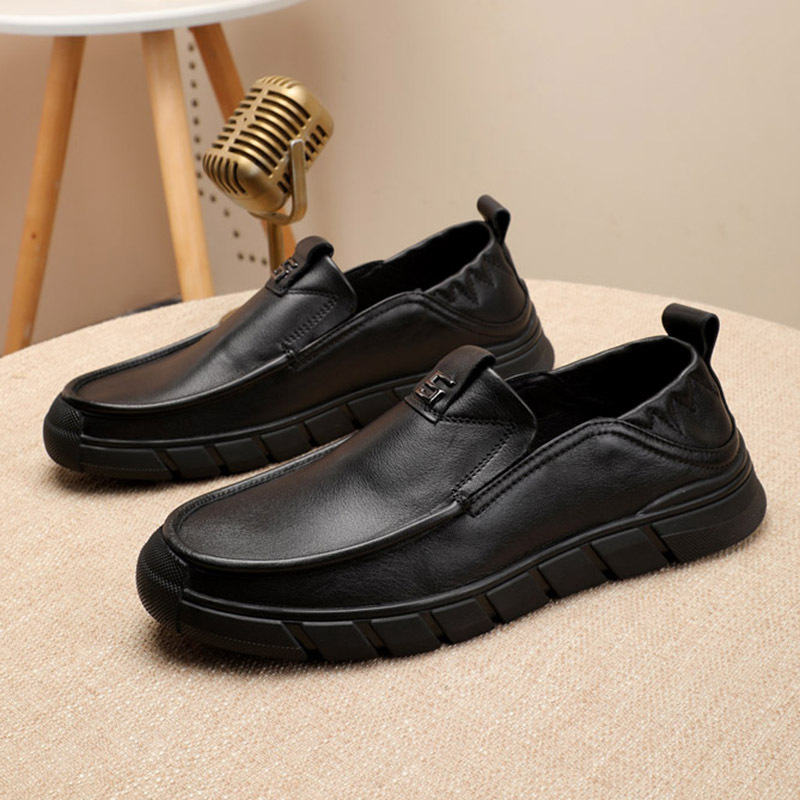 メンズカジュアルレザーシューズ2025新しい多用途トレンディなファッションハイエンド本革ビジネスワークシューズ男性用ビーニーシューズ