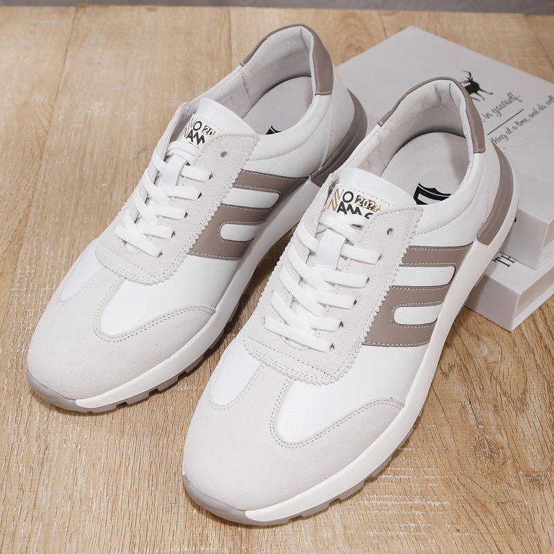 白巧广州手工鞋新款运动鞋男真皮百搭韩版小白鞋男增高户外休闲鞋