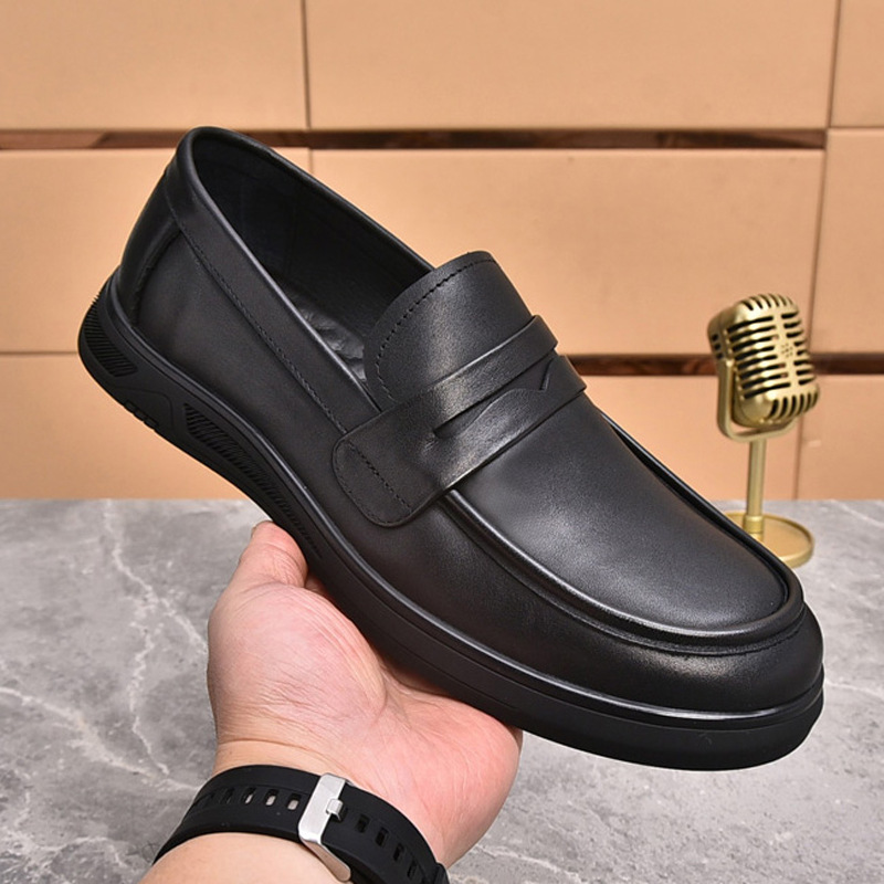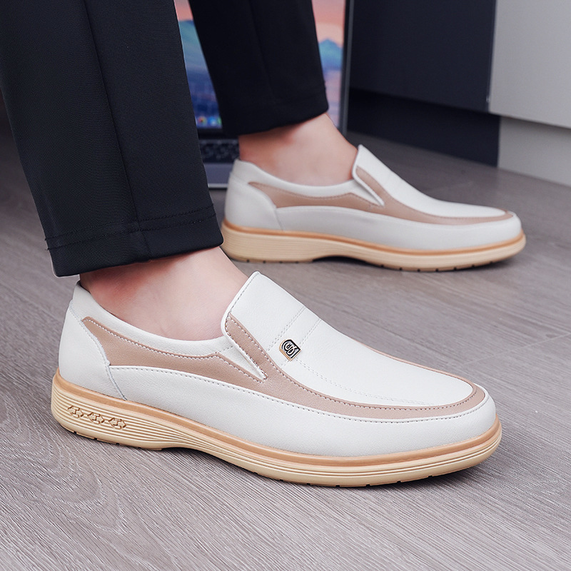2025春夏の新型男性靴の本革の通気性に合わせて柔らかい皮の柔らかい底の広い頭の厚い底のカジュアルな靴の男性