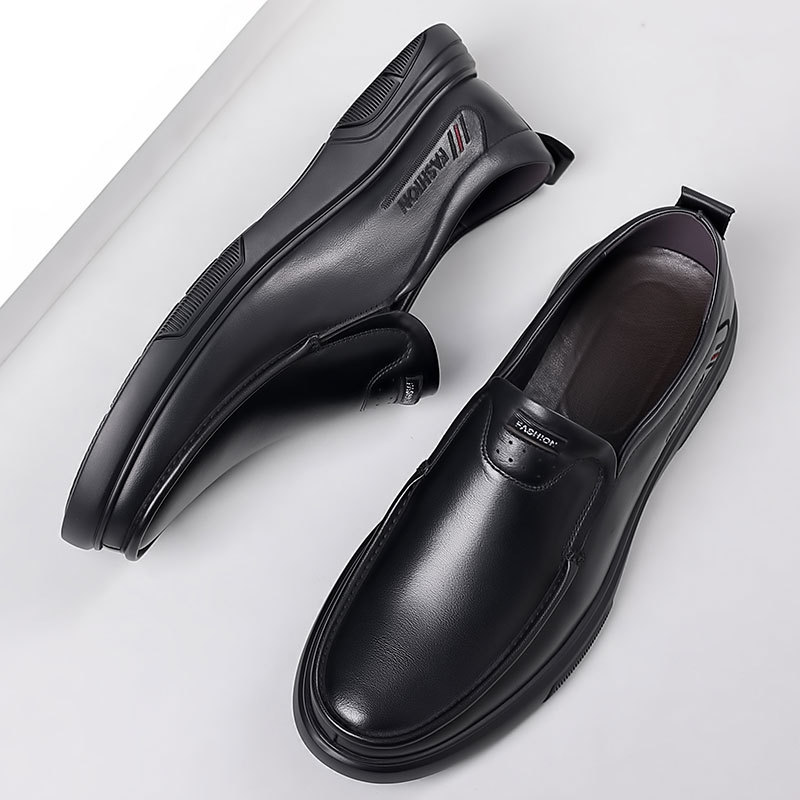 【トップ牛革】2025カジュアル革靴男性真皮ビジネス中高齢者お父さん靴ソフト底滑り止め作業靴