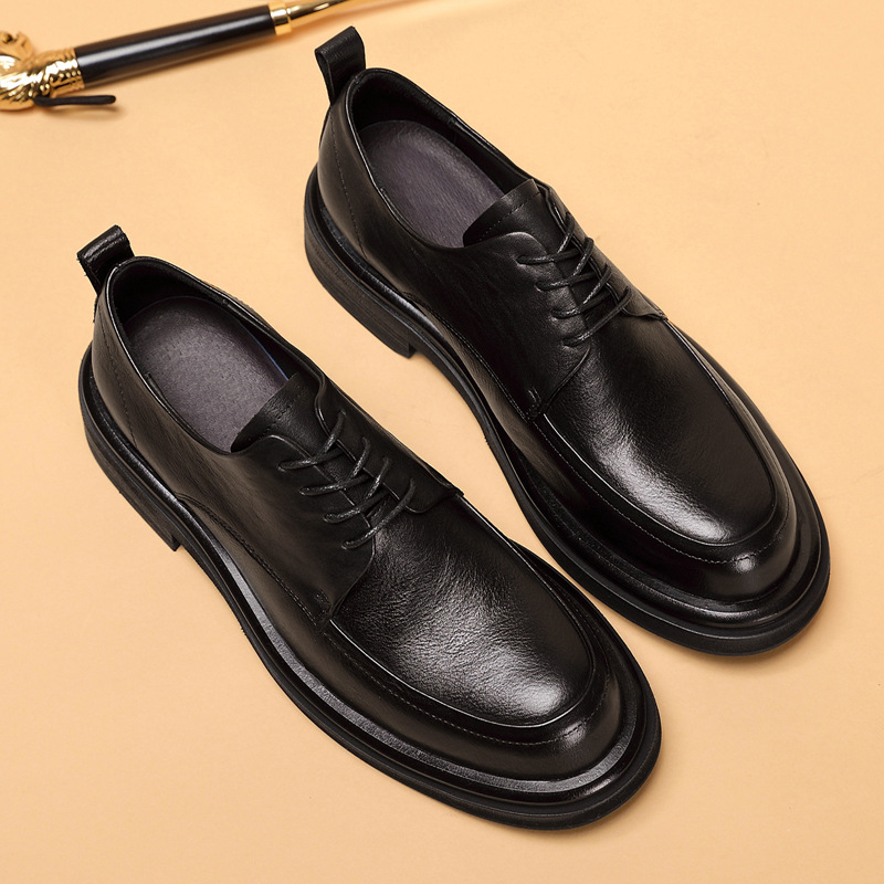 クロスボーダーメンズシューズ 2025 春の新作メンズシューズ通気性のある革靴多用途レースアップトレンディなビジネス革カジュアル革靴