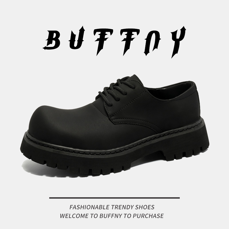 丸い頭の徳比靴の男性の高級感のつや消しの黒色の大きい頭の靴の英倫の厚い底は高くなって復古の靴の潮流のごろつきがかっこいいです。