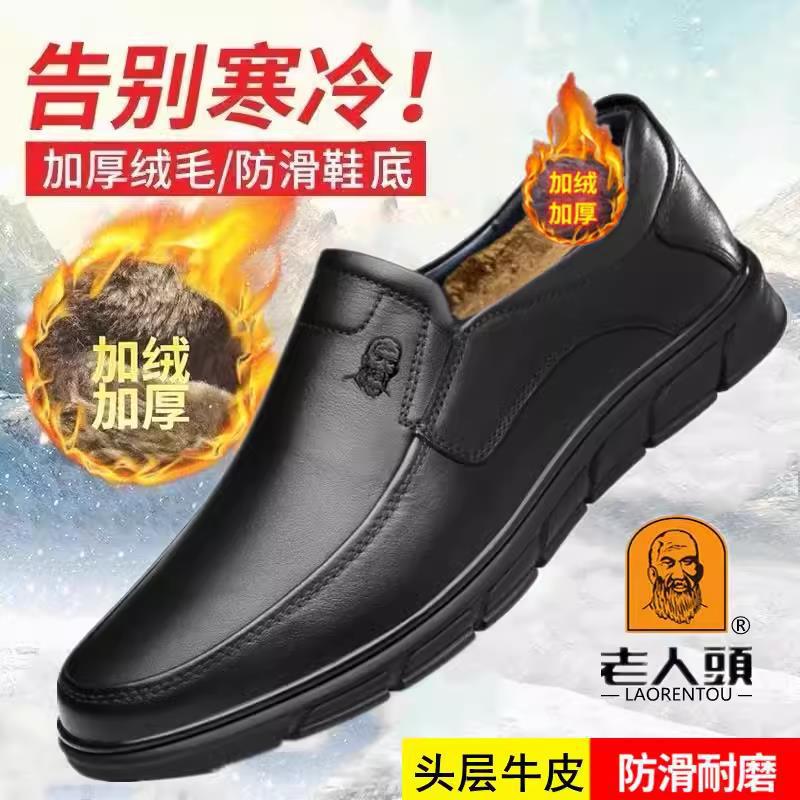 新型カジュアル革靴男性真牛皮男靴冬にベルベット保温ビジネス革靴の丸首ストラップが代発できる