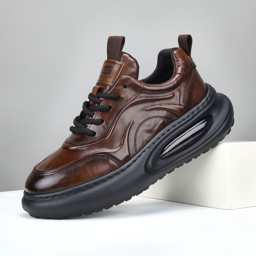 冬の男性靴の頭層牛革男靴カジュアル黒ビジネス靴健歩発泡ソフト底スポーツ男靴