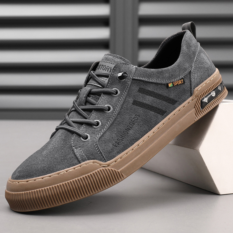 本革豚皮カジュアル靴平靴牛筋軟底男靴厚い底シングル靴滑り止め秋2023新作