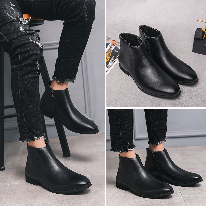 外国貿易の2023大きいサイズの側のファスナーの高い靴の男性の先の英倫のカジュアルなショートブーツのマーティンの靴のチェルシーの皮の靴