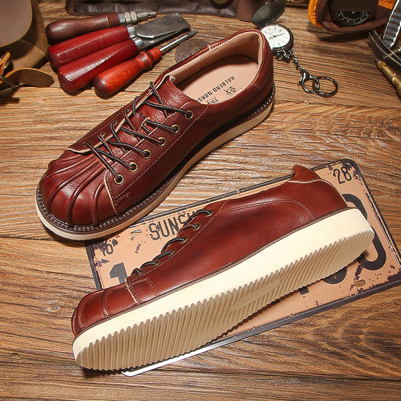 靴の男性の貝の殻の頭の卸売りの2024新型の男性の靴の本革のハイエンドの純牛革の靴のカジュアルな柔らかい底は代行します。