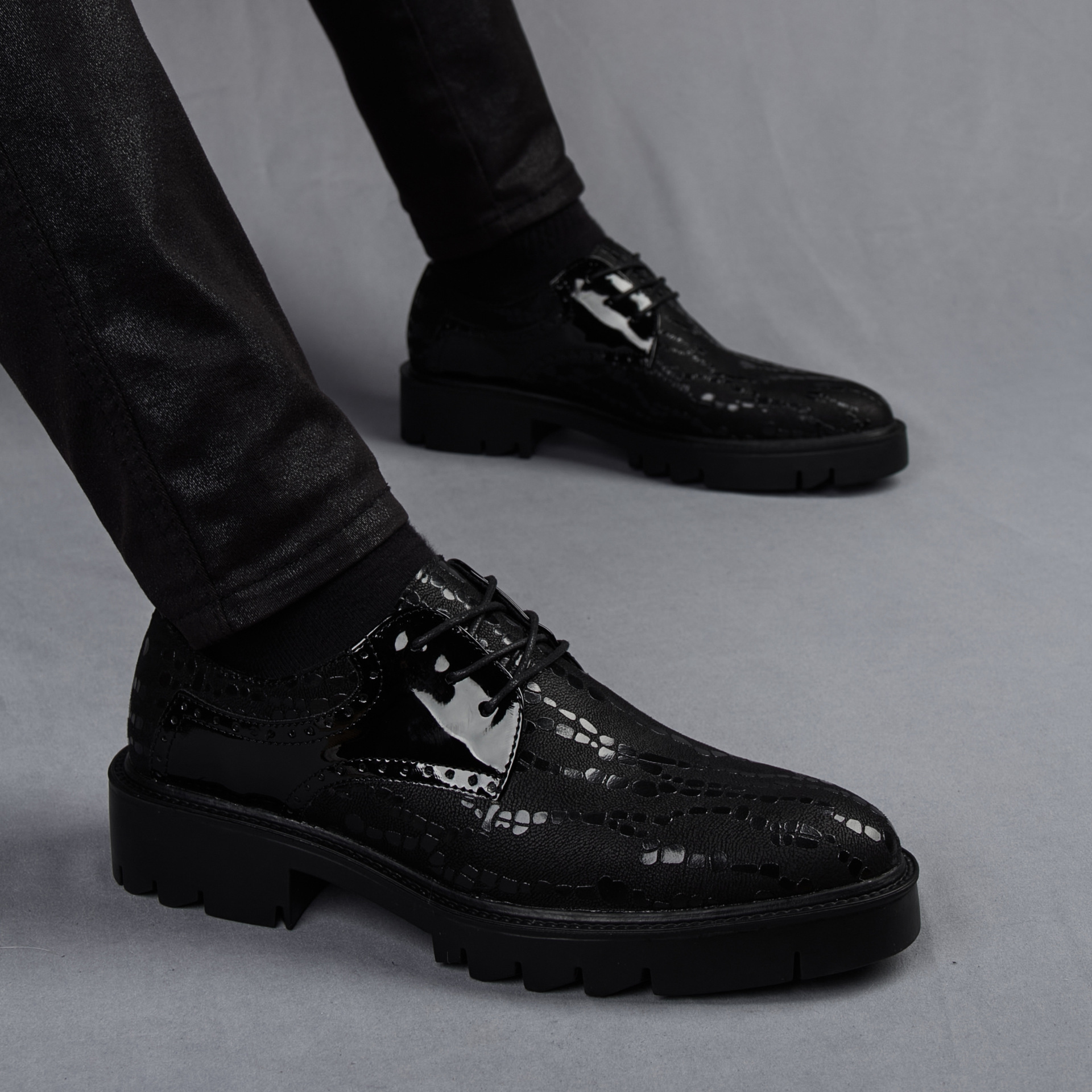 2024春と秋の男性の新しい靴38-46ヤードの大きい靴のクロスボーダーの大きいサイズの厚い底レザーシューズ