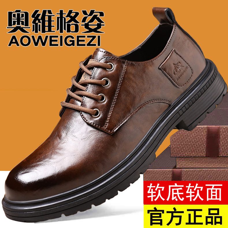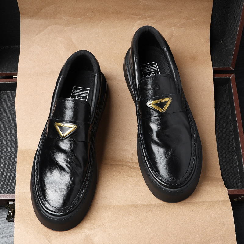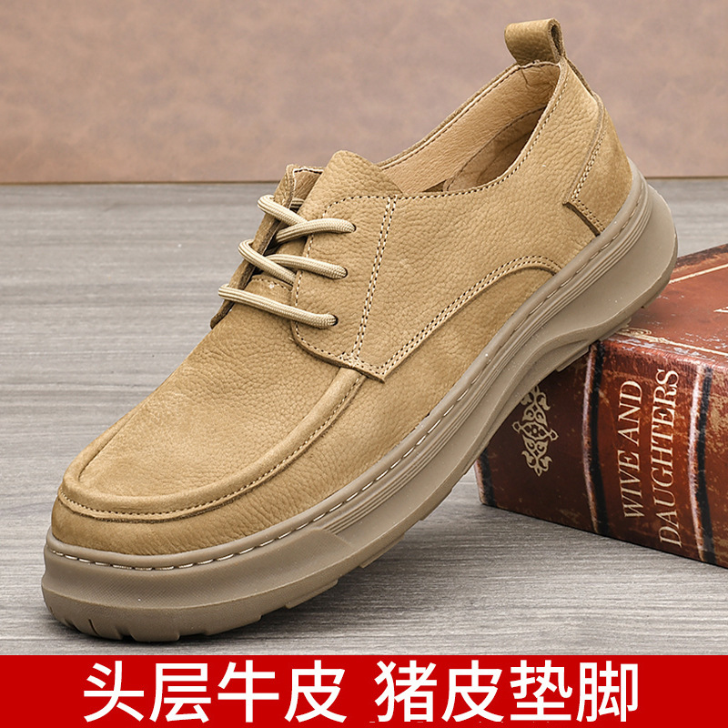 春と秋の新しいメンズシューズのトップ層牛革ビジネスカジュアル厚い底英倫潮流工装靴の柔らかい底の車の靴