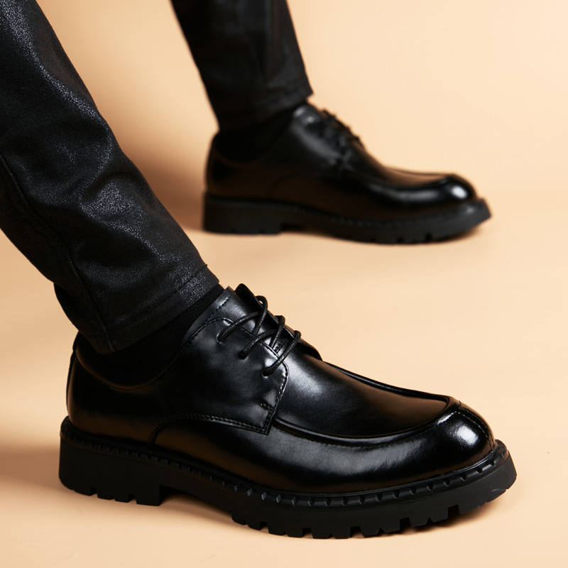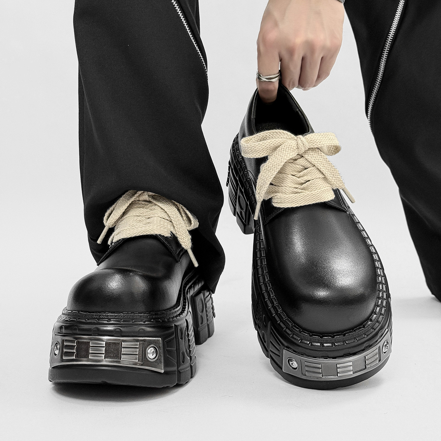 2025年秋新作メンズシューズ、英国風ハイトップメンズファッションカジュアルシューズ、トレンディなビジネスブラック厚底革靴