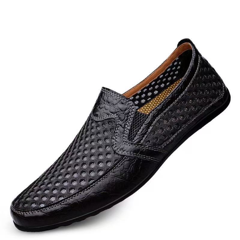 本革メンズシューズ夏メッシュ通気性革靴メンズビジネスクラシックカジュアル小さな革靴一本足怠け者靴男