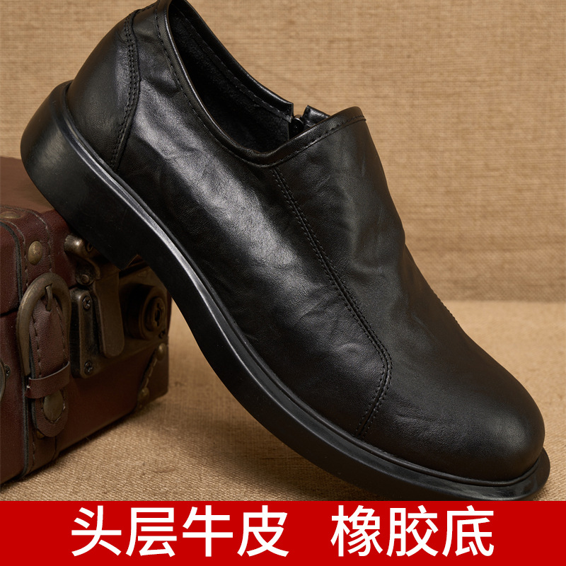 メンズ単層ビジネス革靴カジュアル革靴トップ層牛革ゴム底サイドファスナー履きやすい黒ブラウン