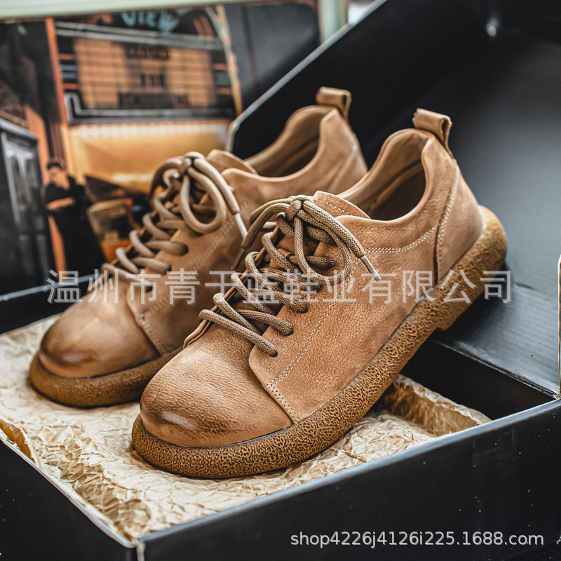 メンズカジュアル革靴春と秋の新型本革英倫レトロ厚い底の工装靴の柔らかい皮の柔らかい底の低い靴の男性