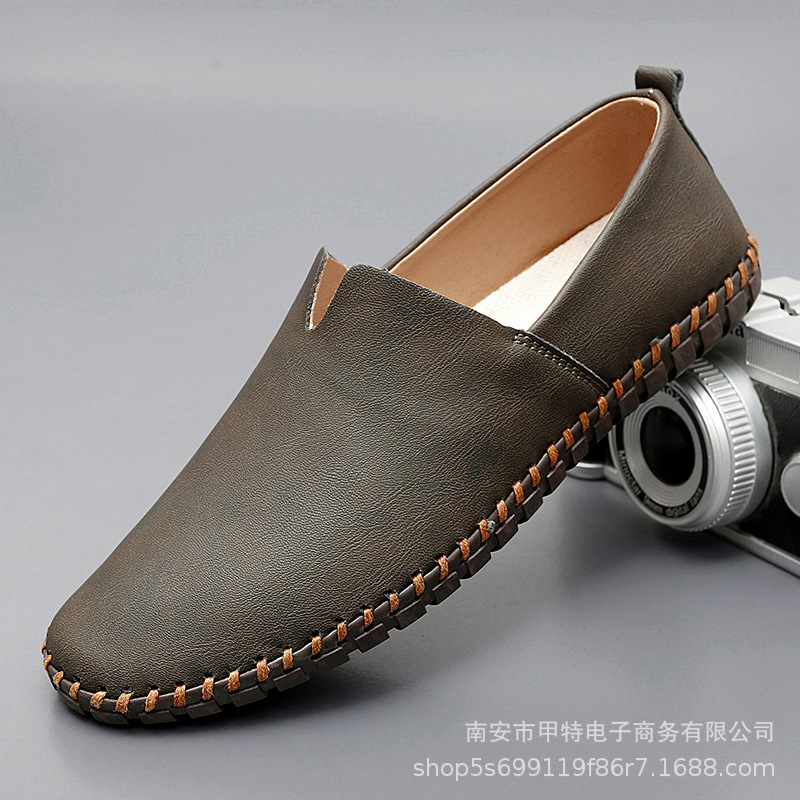 本革カジュアル楽福靴男2025春夏新作平底一足足足ソフト底メンズレトロ豆靴
