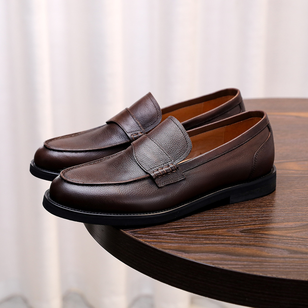 楽福靴の男性は復古風2025の新型の頭層牛革の通気性の柔らかい底の柔らかい靴を持っています。