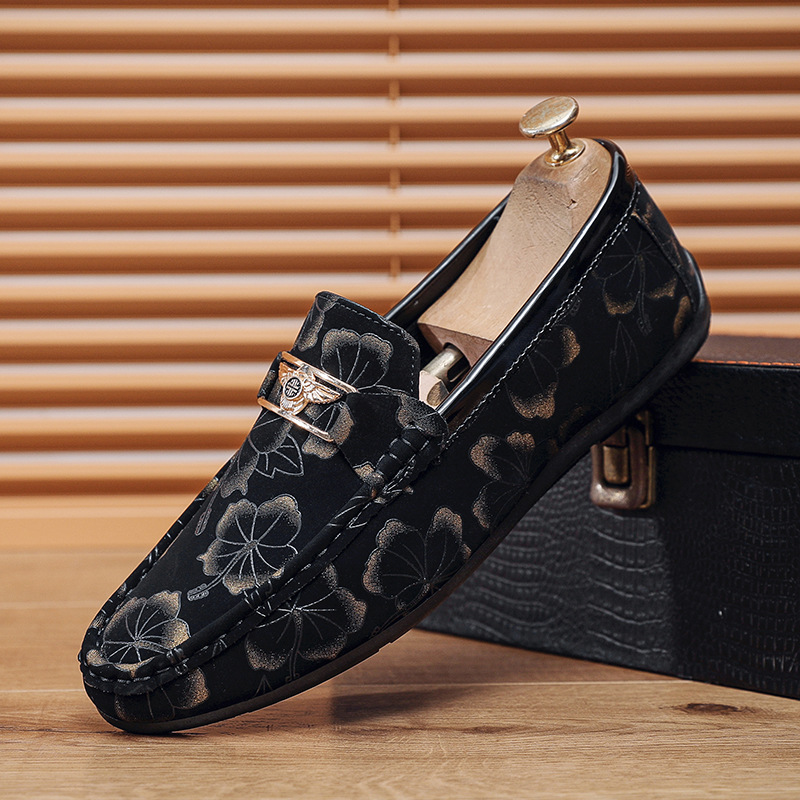 国境を越えた男性靴ファッション個性プリント楽福靴男性は足を組んで怠け者靴男性用豆靴を漕ぐ