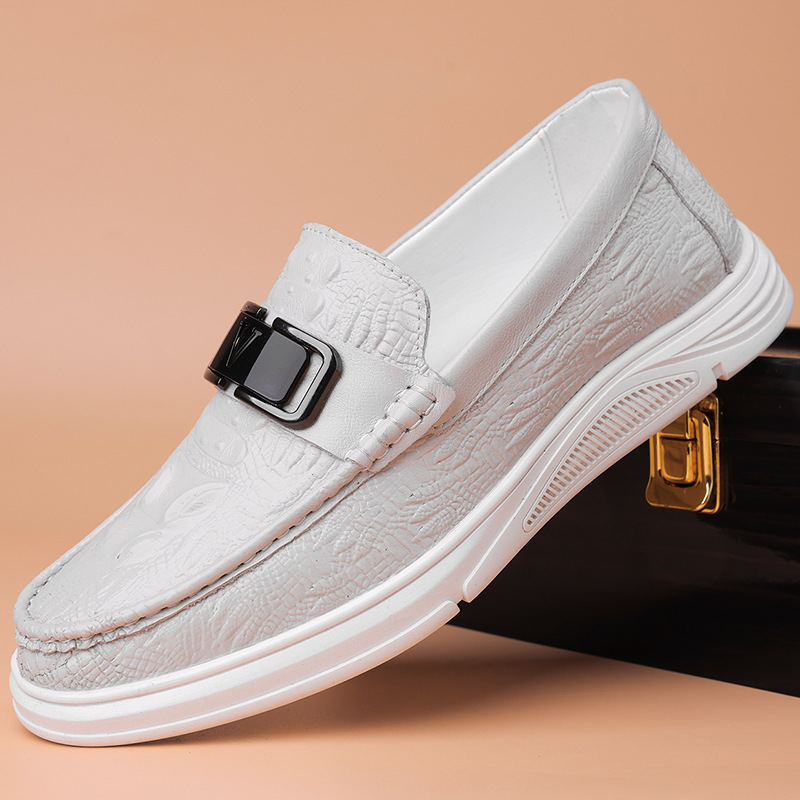 2025年と秋の新型男性の白いカジュアル靴の男性のワニの紋様の本革は足の豆の靴をかぶせて車の靴を運転して代行します。