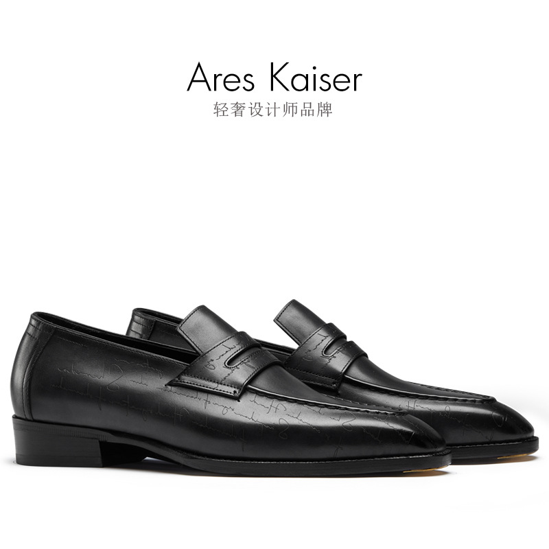 H52821【ドロップシッピング】ダークラインレザーアウトソールカジュアルペニーローファー刻印メンズ革靴