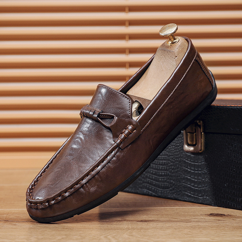 男性レトロなトップの牛革豆靴男性の軽い車で楽福靴2025カジュアル靴男