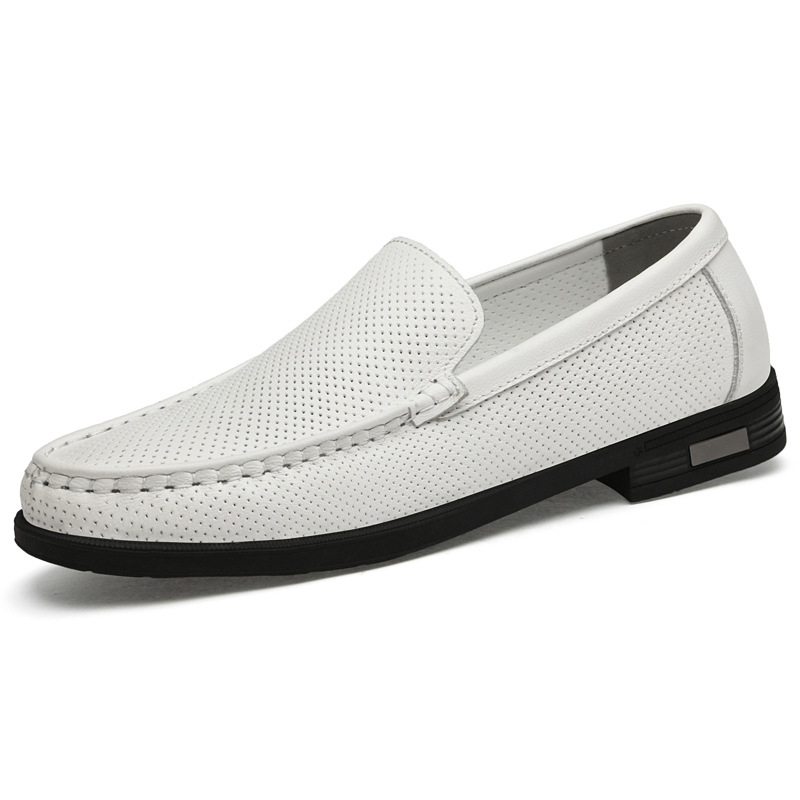 超価値単層レザービーニーシューズ 2025 夏の新スタイル通気性と快適な弾性口メンズカジュアルシューズ