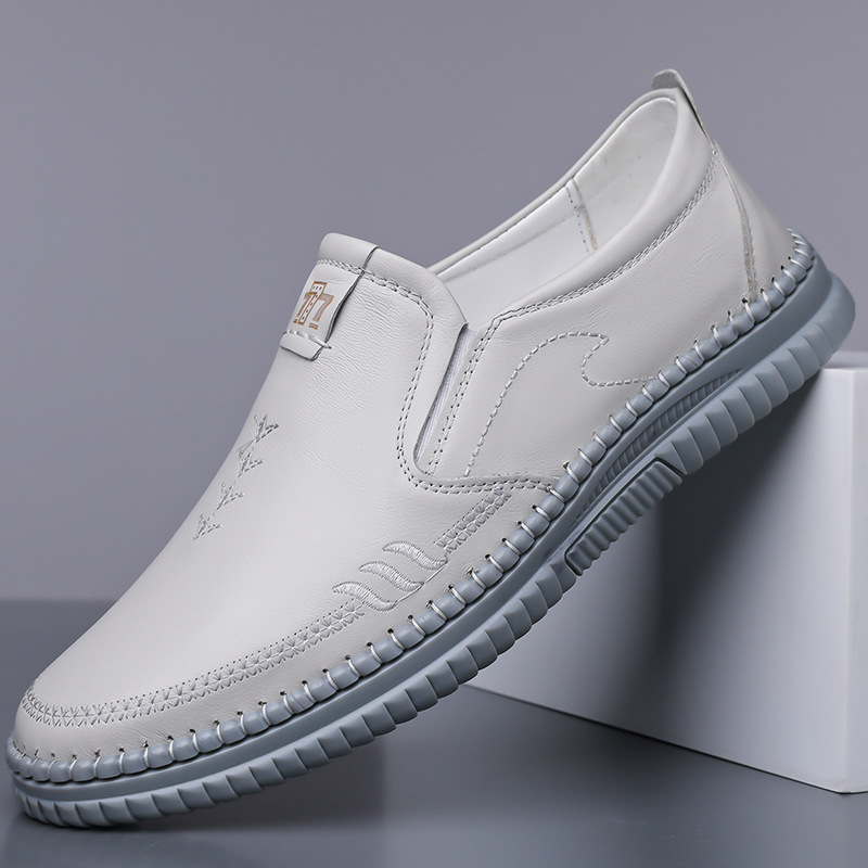 頭層牛革男靴2025夏の新型男性真皮カジュアル靴通気滑り止め白靴