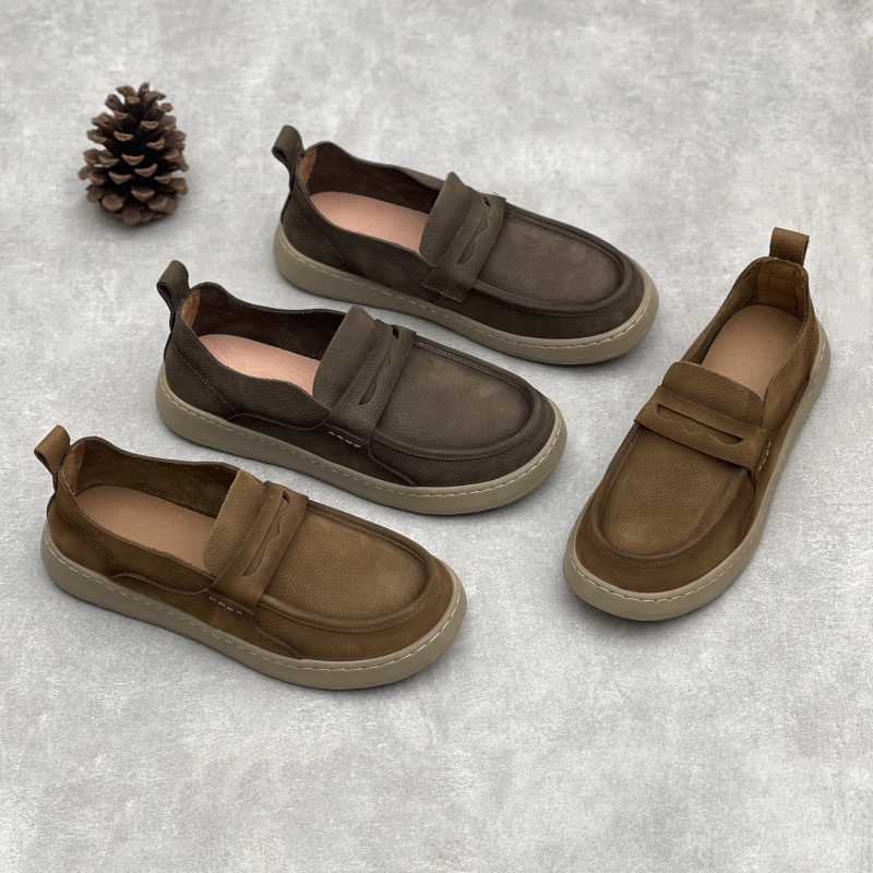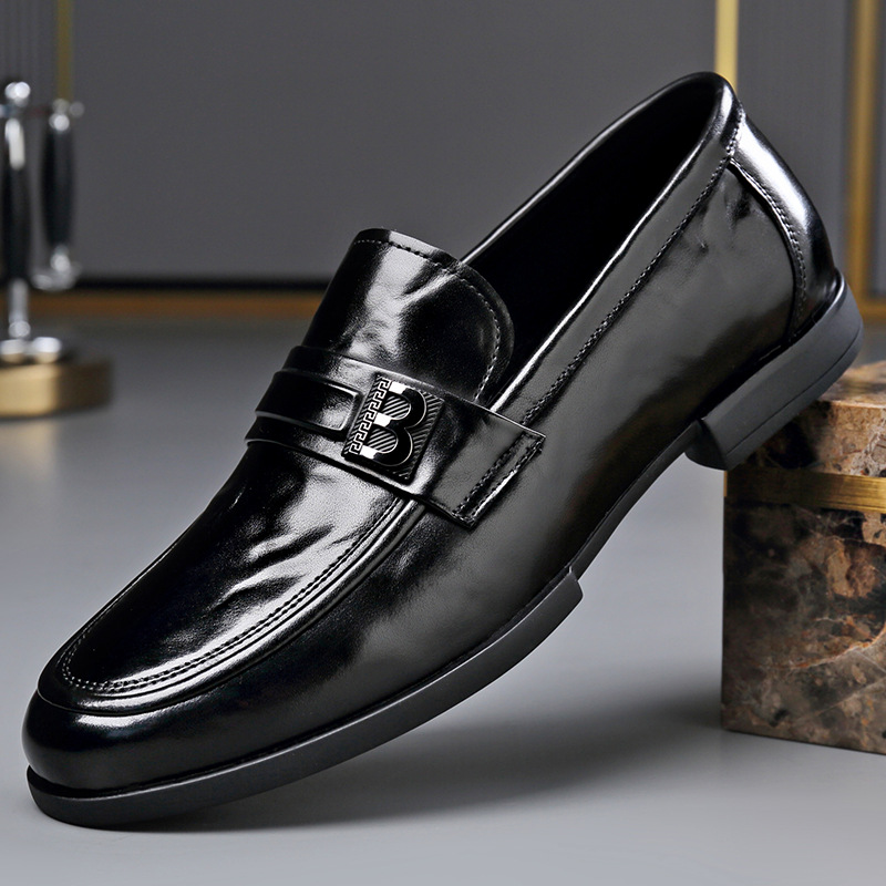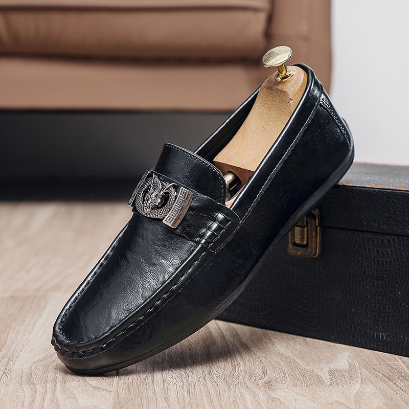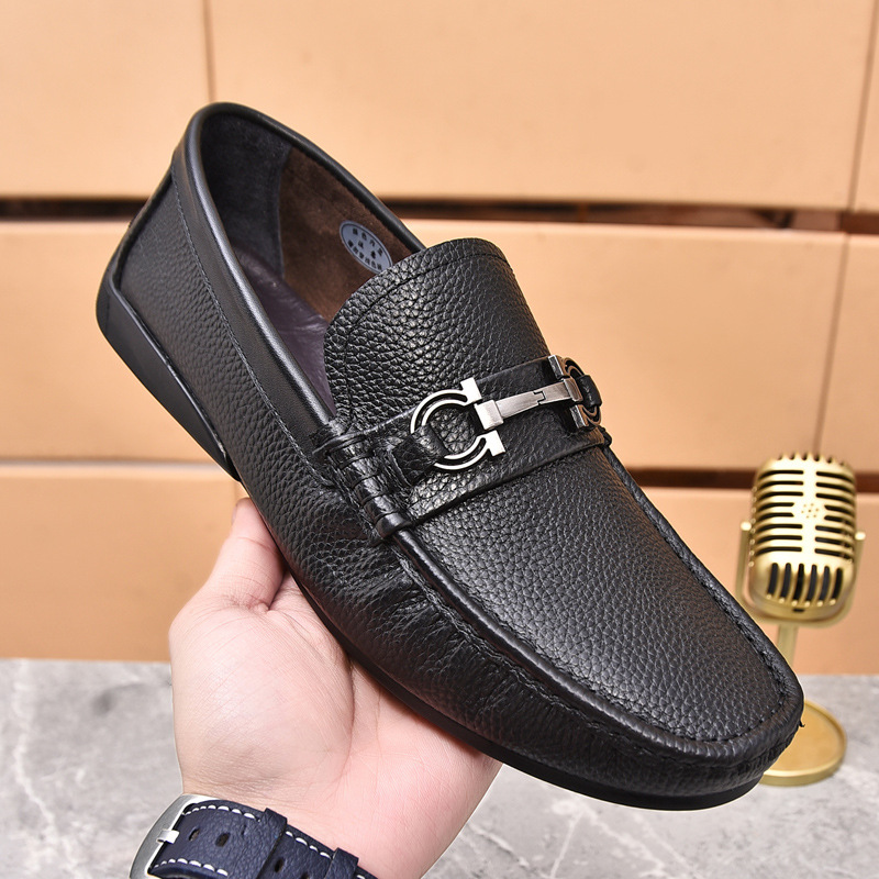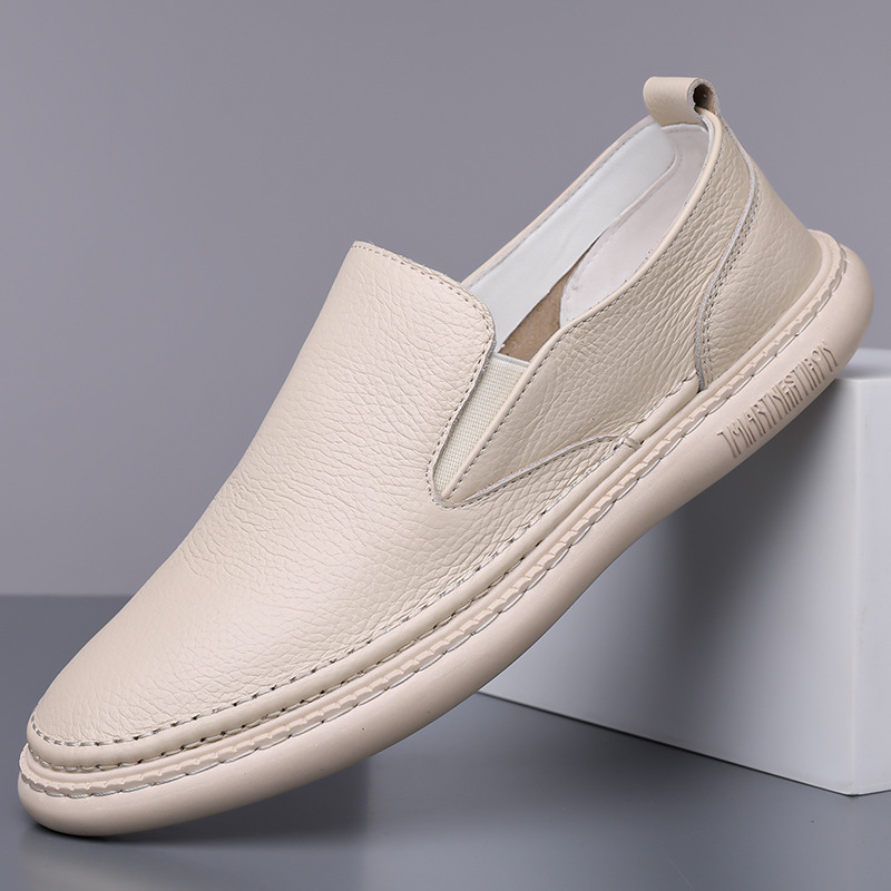 2025 春と秋の新ビジネスカジュアルシューズ軽量ソフトソールトップレイヤー牛革ローファースリッポンビーニーシューズ