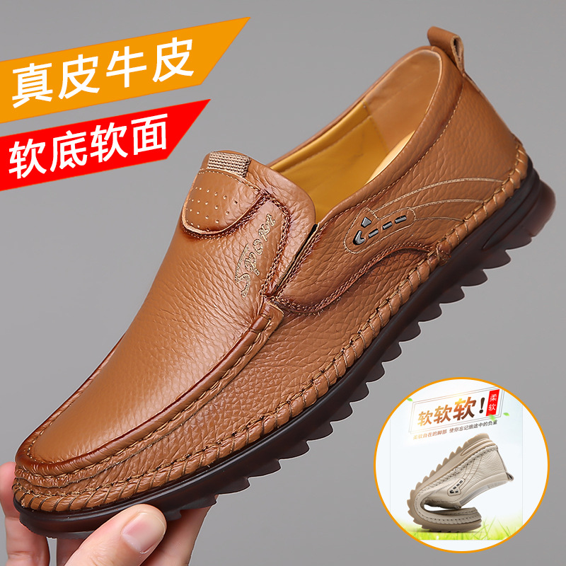 靴男の春の牛革の柔らかい底の滑り止めの頭の層の牛革は低いカジュアルな男の靴の中年の老人のお父さんの靴を手伝います。