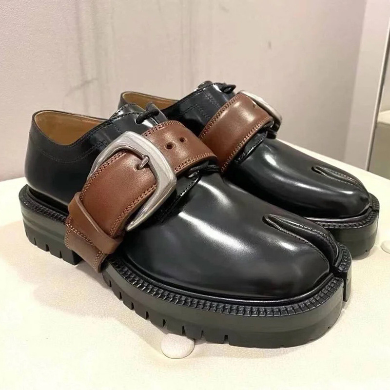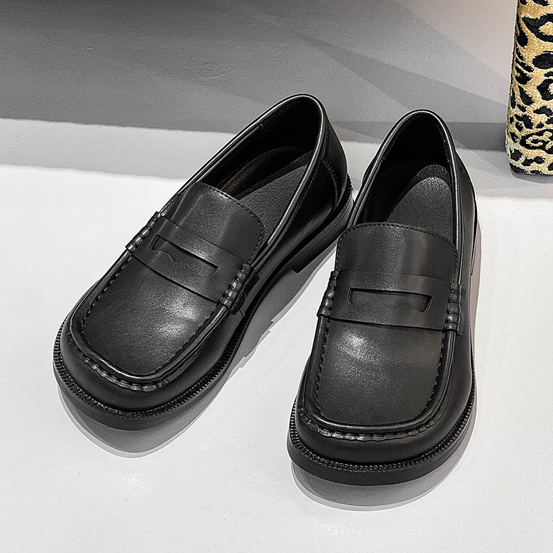 高品mm 6分の足の靴の女性の豚の蹄の厚い底の楽福の靴の本革の徳比のひもの小さい大衆の潮の靴は色の小さい革靴を拭きます