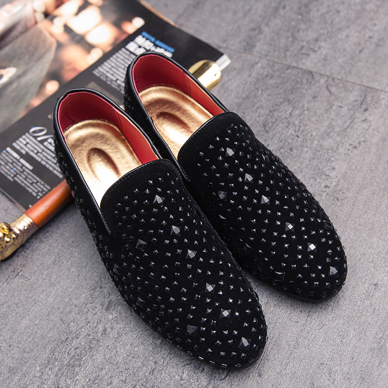 革靴 メンズ 英国風 ポインテッドトゥ ラインストーン スパンコール スリッポン ビジネス 韓国風 ナイトクラブ トレンドシューズ 結婚式 ヘアスタイリスト 紳士靴