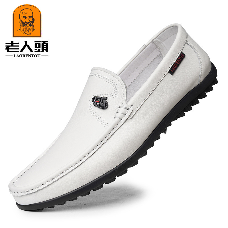 男の靴2025春夏の新型の低い組の英倫の豆の靴のマジックはカジュアルな怠け者の白い靴の単靴を貼ります。