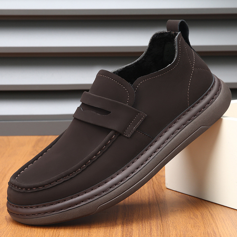 楽福靴男性本革レトロソフト底柔らかい面秋冬怠け者綿靴快適加毛保温レジャー靴